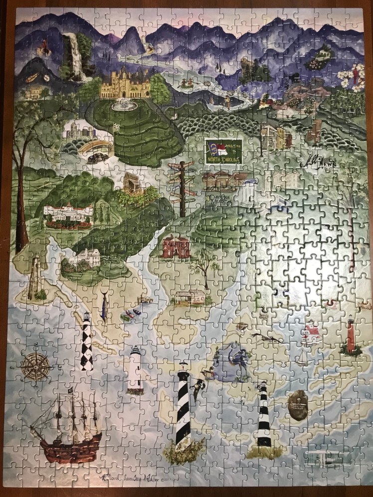 We completed the puzzle, and now we are puzzle-obsessed. In my puzzling personal life, I have also worked out some health kinks and schedule arranging that suit my life much better. Hurrah for perseverance and making changes! And great doctors.